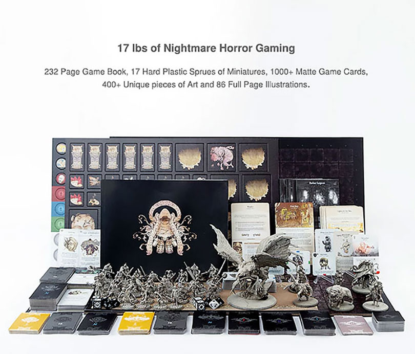 A edição completa vai custar em média $300 dólares, incluindo um livro de 232 páginas, 17 peças miniaturas fabricadas à mão e mais de 1000 cartas. A Caixa do Jogador vem junto e abrange todos os objetivos de extensão da campanha e outros pacotes.