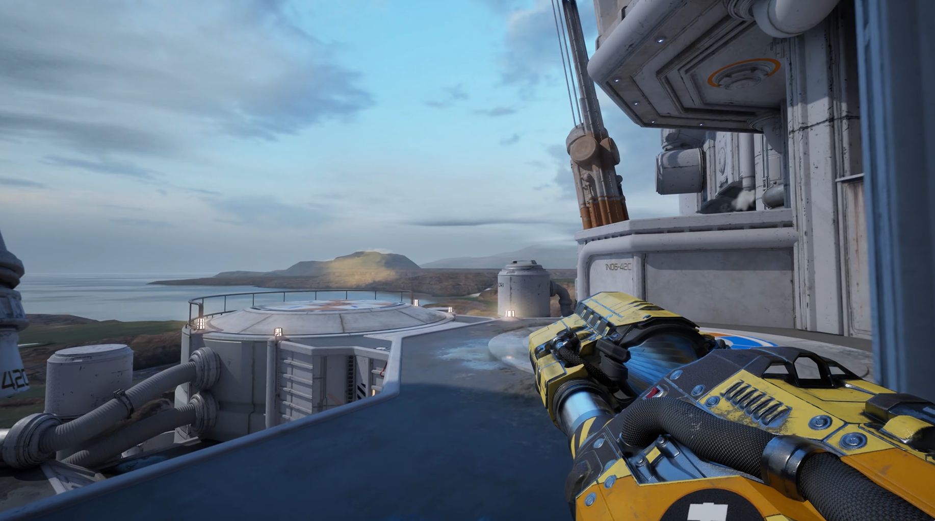 Assim que o projeto é iniciado, o jogador já cai no meio da ação, com aquele ritmo acelerado e focado em movimentação que consagrou a série. A experiência é simples e direta, funcionando quase como um playground técnico: um único mapa chamado Outpost, movimentação livre e alguns testes de tiro, sem multiplayer, bots ou modos extras.