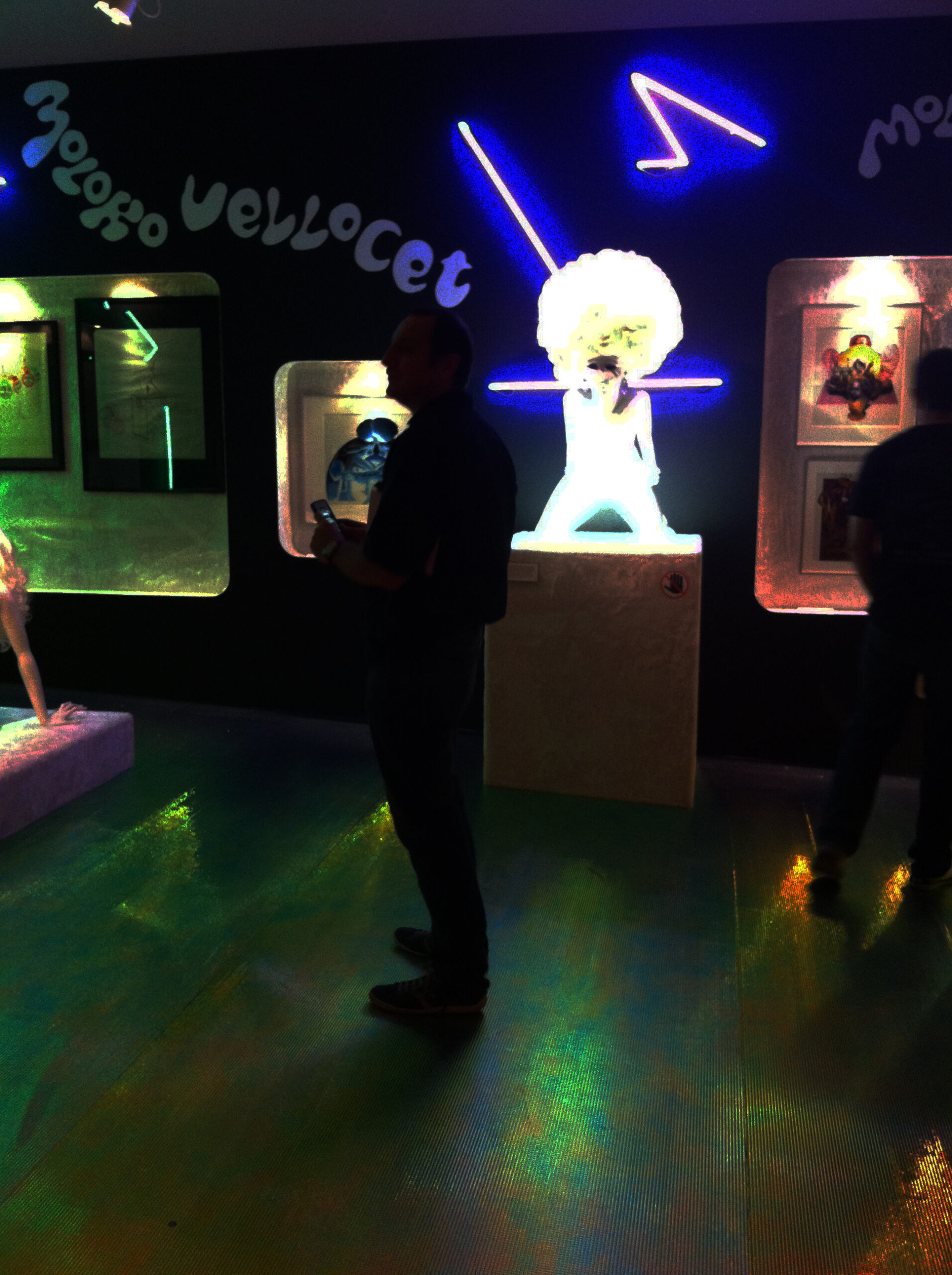 Também há a nave de 2001: Uma Odisséia no Espaço; o Korova Milk Bar de Laranja Mecânica; e até o baile de máscaras de De Olhos Bem Fechados.