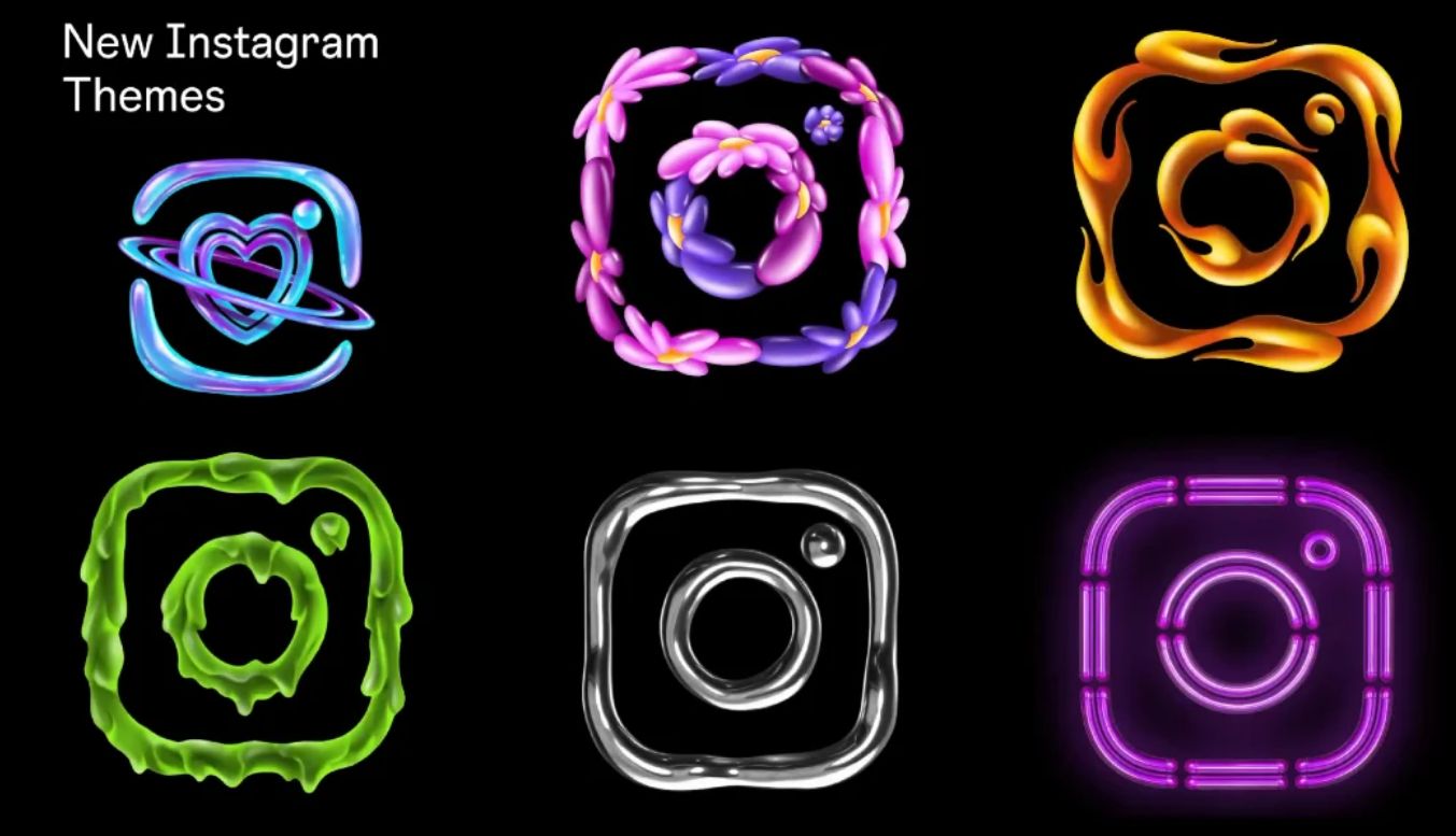 São seis novas opções de ícones, batizadas de Chrome, Cosmic, Slime, Fire, Floral e uma versão neon, todas criadas em parceria com o ilustrador espanhol Carlos Oliveras Colom (@doncarrrlos). O artista apostou em um visual divertido e expressivo, inspirado na cultura visual dos jovens e nas formas de autoexpressão digital que eles já usam, como adesivos, widgets personalizados e temas coloridos.