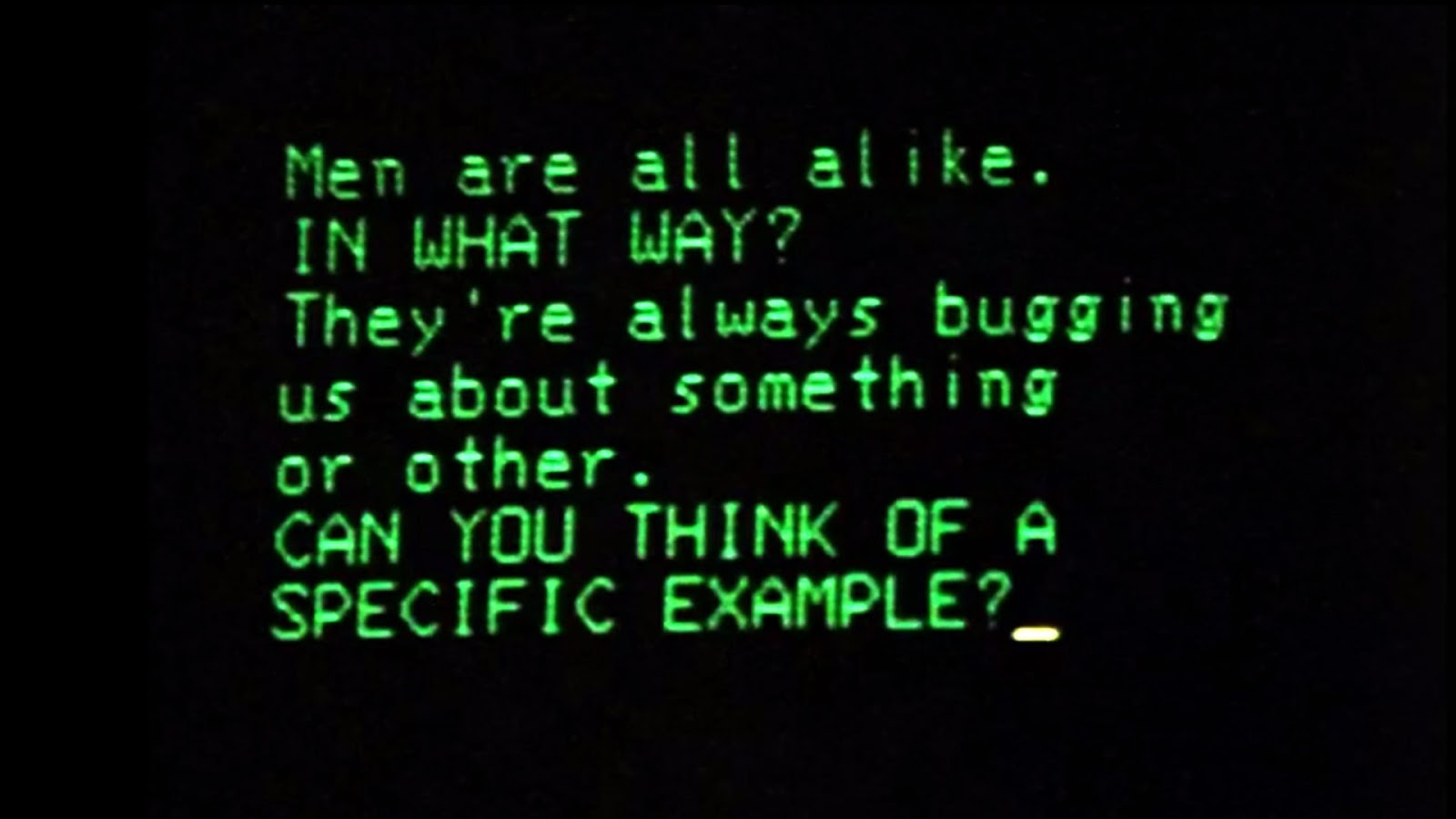 “O computador não te olha feio, não se irrita e nem tenta transar com você!”, confessou uma usuária. Para Curtis, o que o Eliza exprimiu foi a era do individualismo, que faz as pessoas se sentirem seguras ao verem sua personalidade refletida, como um espelho.