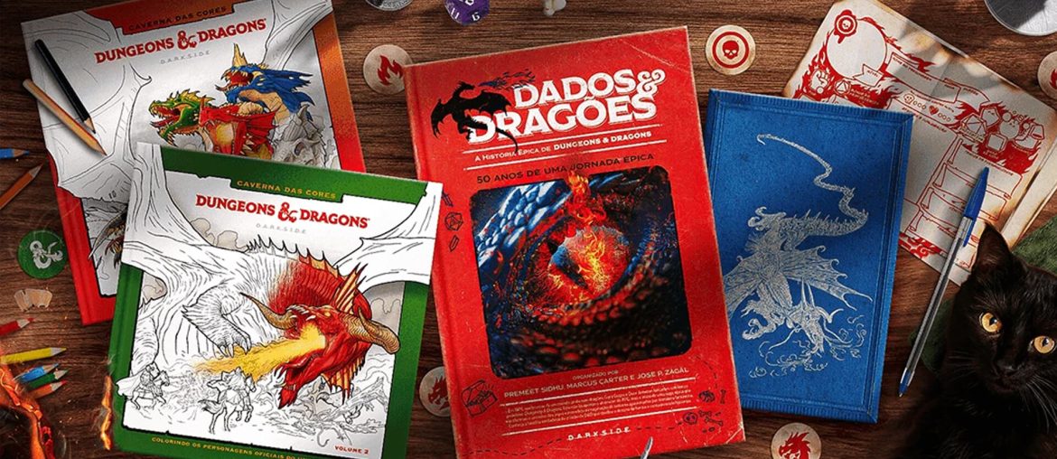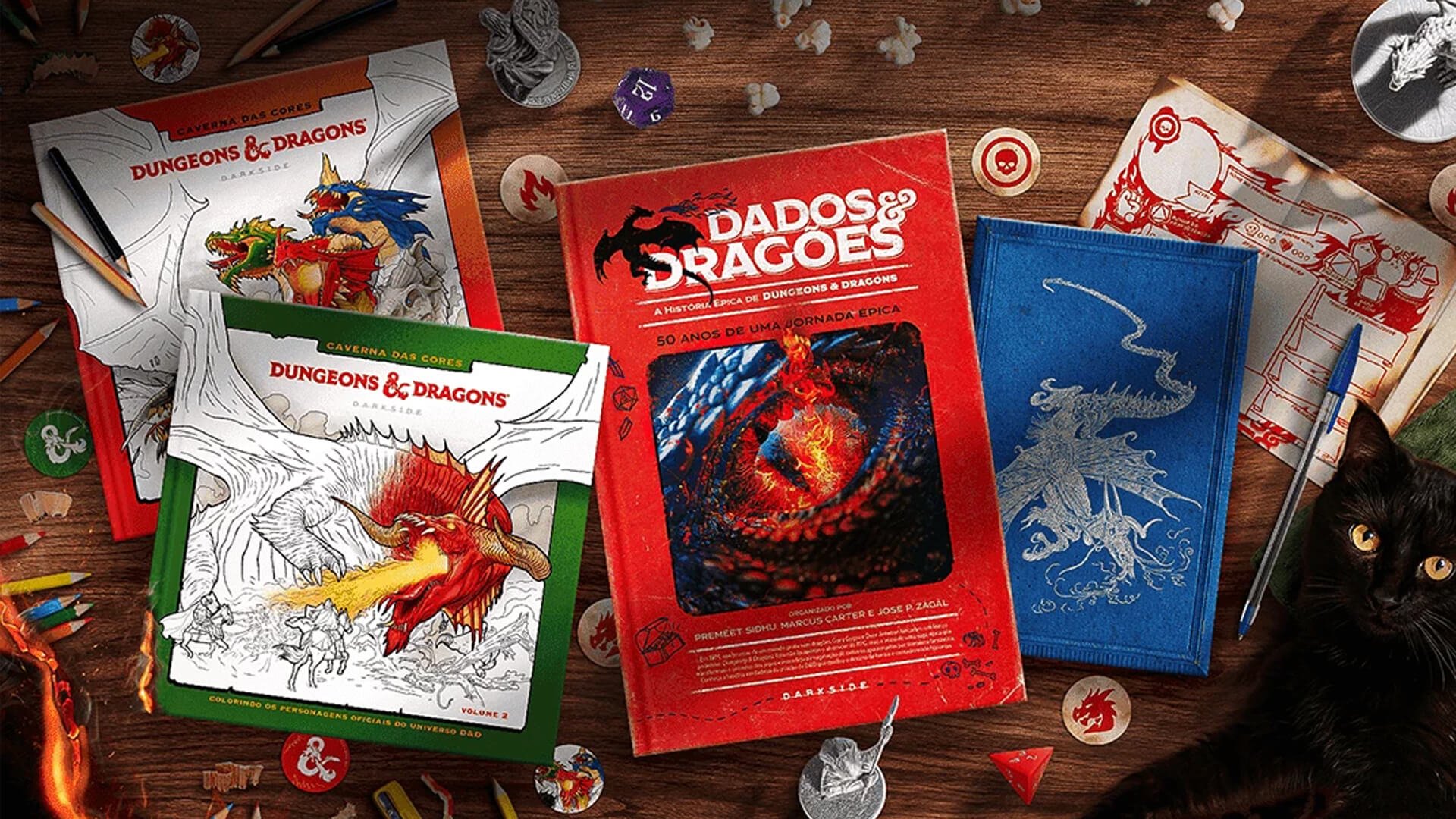 A editora Darkside Books iniciou a pré-venda da campanha Dragões Darkside, uma celebração épica aos 50 anos do universo de Dungeons & Dragons. A iniciativa traz três lançamentos especiais para fãs de RPG, colecionadores e aventureiros de todas as gerações: o livro Dados & Dragões: A história épica de Dungeons & Dragons e os volumes 1 e 2 de Dungeons & Dragons: Caverna das Cores, livros de colorir oficiais do universo D&D.