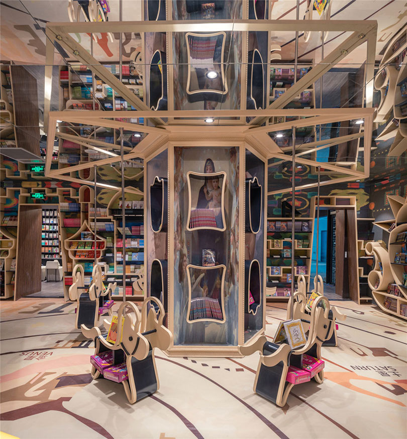 O espaço foi projetado pelo estúdio chinês XL-Muse, que visava criar um espaço com ambientes diversos, e que deixassem os leitores imersos no mundo dos livros.