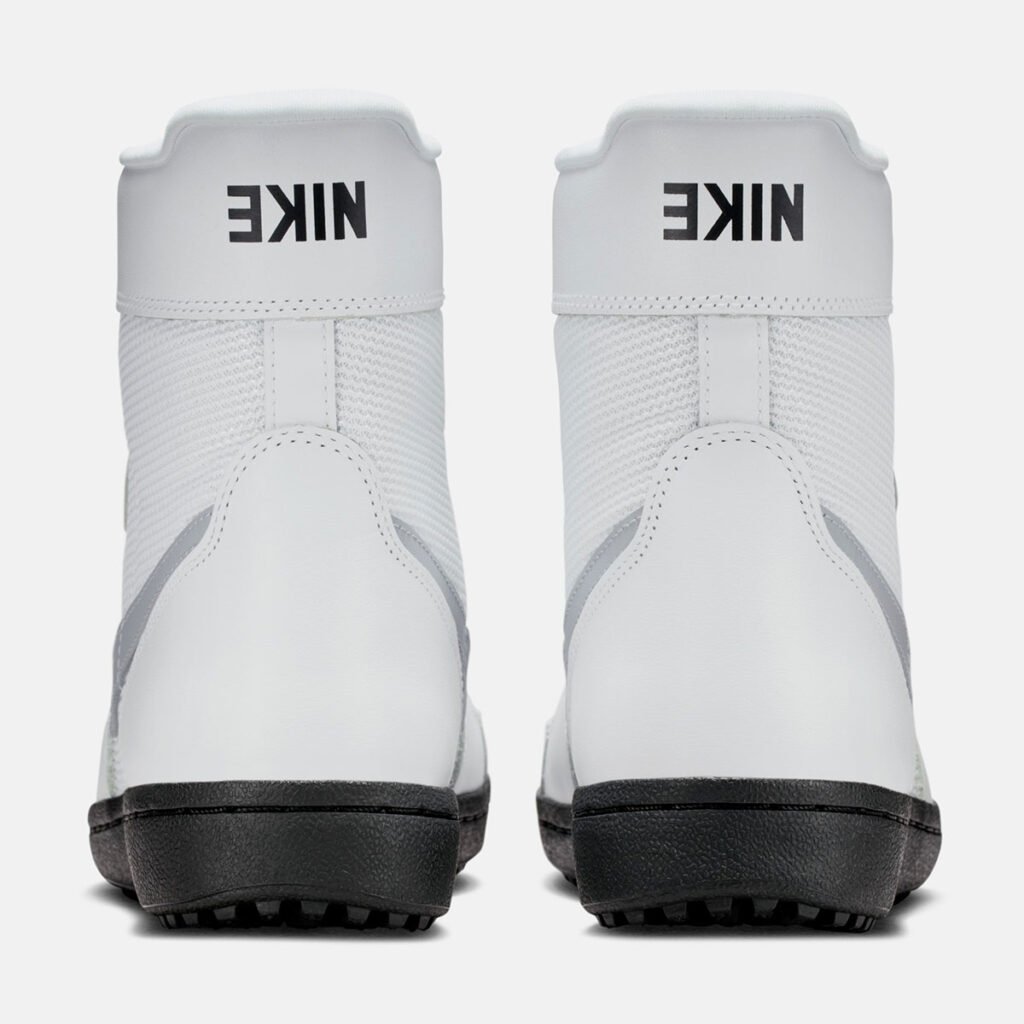 Couro marcado, cadarços manchados, entressola desgastada e pequenos símbolos do Mundo Invertido ajudam a criar essa sensação de achado histórico, mais do que de um simples lançamento novo.