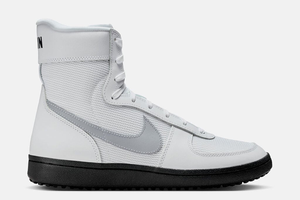 A coleção se completa com roupas da Nike que seguem a mesma lógica retrô, apostando em silhuetas esportivas clássicas como camisetas gráficas, moletons, calças de moletom e um agasalho que parece ter saído direto de uma quadra de colégio em 1985.