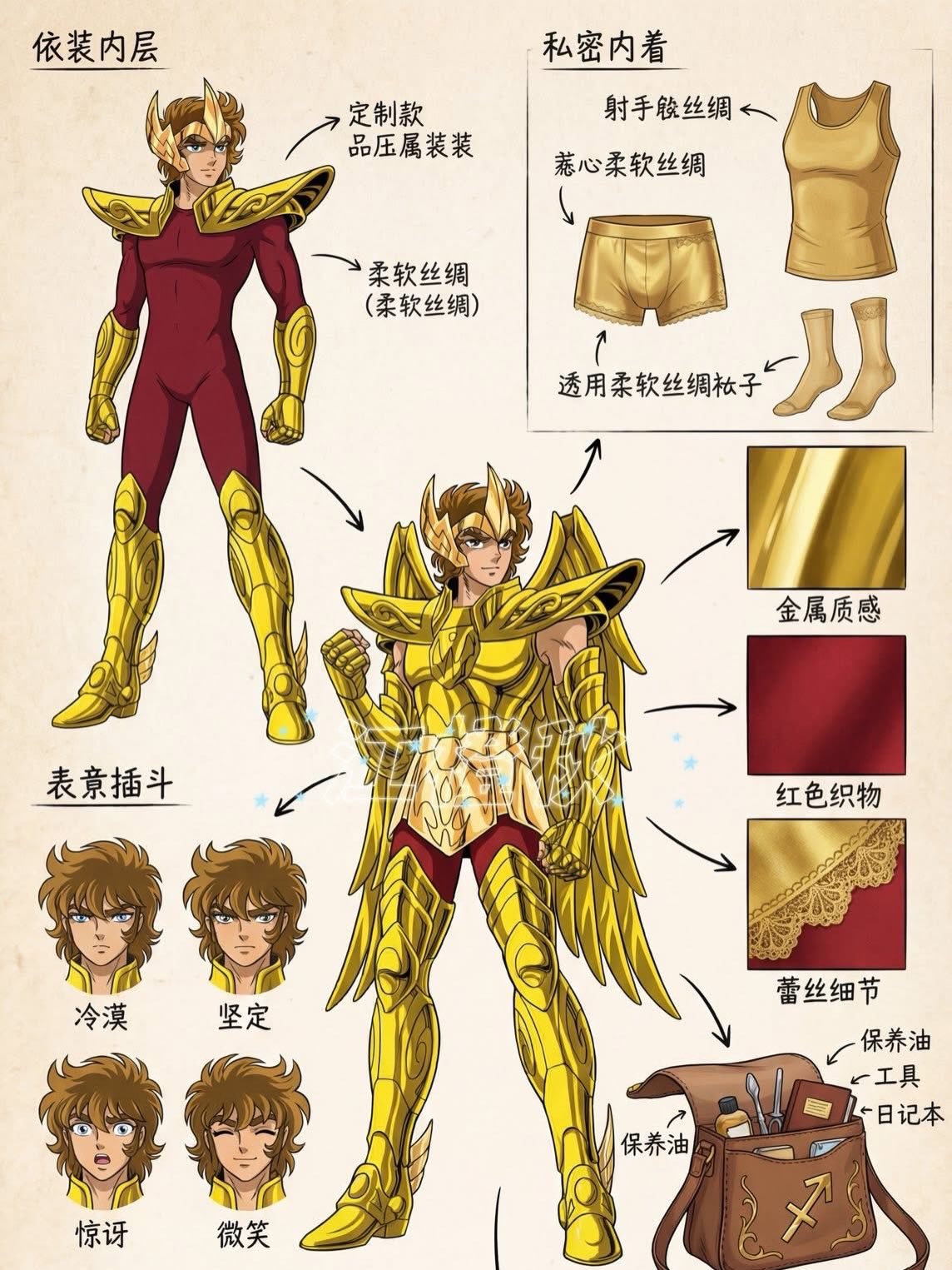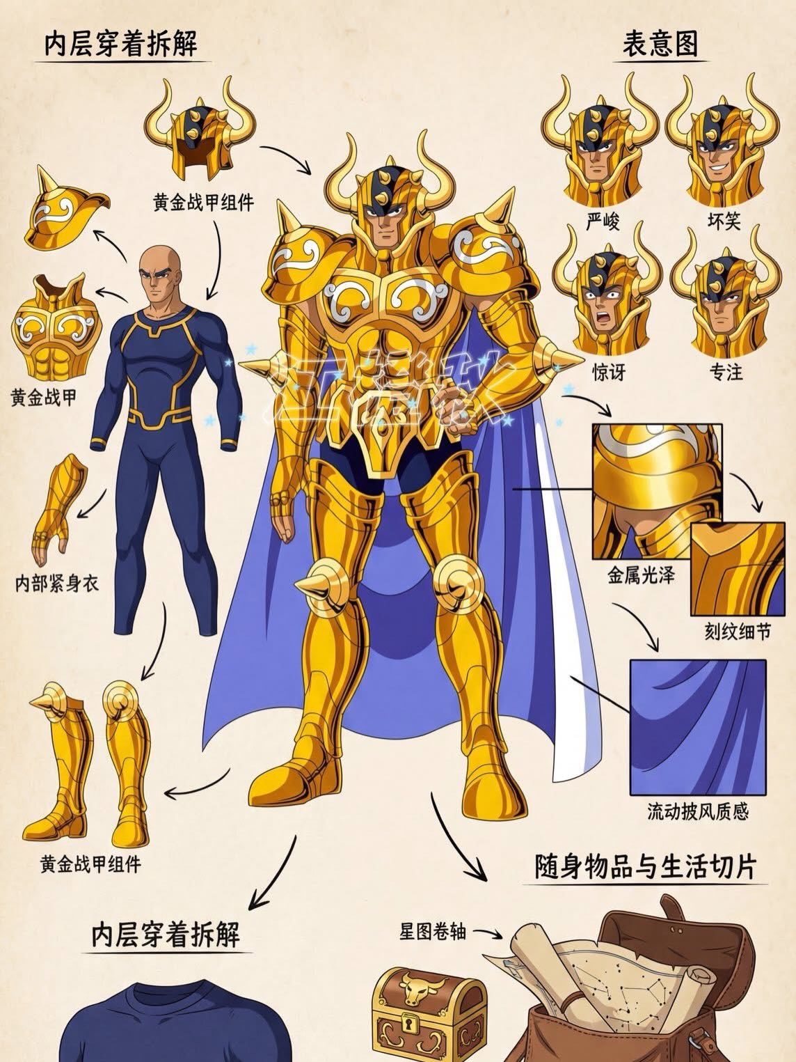 Os Cavaleiros de Ouro foram talvez a saga mais interessante do clássico anime Cavaleiros do Zodíaco. E agora temos algumas ilustrações para exemplificar o vestuário dos Cavaleiros de Ouro. Ou seja, as roupas que eles usam, de forma mais detalhada.