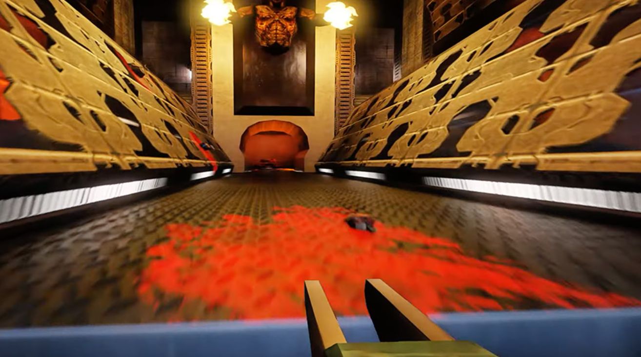 O rastro da arma de trilho deixa marcas brilhantes nos pisos polidos dos cenários. O desempenho em placas de vídeo compatíveis com ray tracing tem sido muito elogiado pela fluidez constante. Usuários em fóruns especializados destacam o realismo das explosões e a nova atmosfera sombria nos cantos escuros dos níveis reconstruídos.