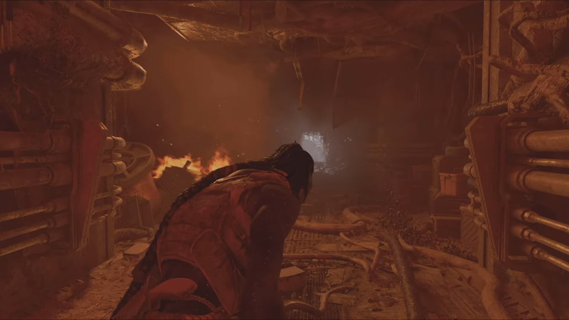 Das Cinzas, a nova expansão lançada, amplifica essa imersão através de uma mudança perspectiva revolucionária ao utilizar o modo em terceira pessoa. Inicialmente, ambos os jogos eram estritamente primeira pessoa, uma escolha que, embora funcionasse, criava uma desconexão entre o design visual impressionante e sua visualização. A adição desse novo modo de visão, também como atualização gratuita para o jogo base, é transformadora. Agora você pode ver o corpo de So’lek, seus movimentos fluidos e suas finalizações brutais contra inimigos. Essa câmera permite apreciação completa das animações de combate elaboradas, tornando cada confronto fisicamente satisfatório de maneiras que antes, em formato primeira pessoa, simplesmente não conseguia alcançar. E tudo isso não é apenas uma mudança cosmética, pois a perspectiva afeta como você se posiciona em combate, como você se posiciona furtivamente, como você aprecia o ambiente ao redor. A equipe de desenvolvimento retrabalhou o visual para acomodar essa nova perspectiva, além de mudanças nos sons do jogo. Das Cinzas foi construído como terceira pessoa como padrão para So’lek, e você realmente sente a diferença no polimento das interações e na qualidade cinemática dos momentos narrativos, quando comparamos ao jogo base que não teve todo esse cuidado.