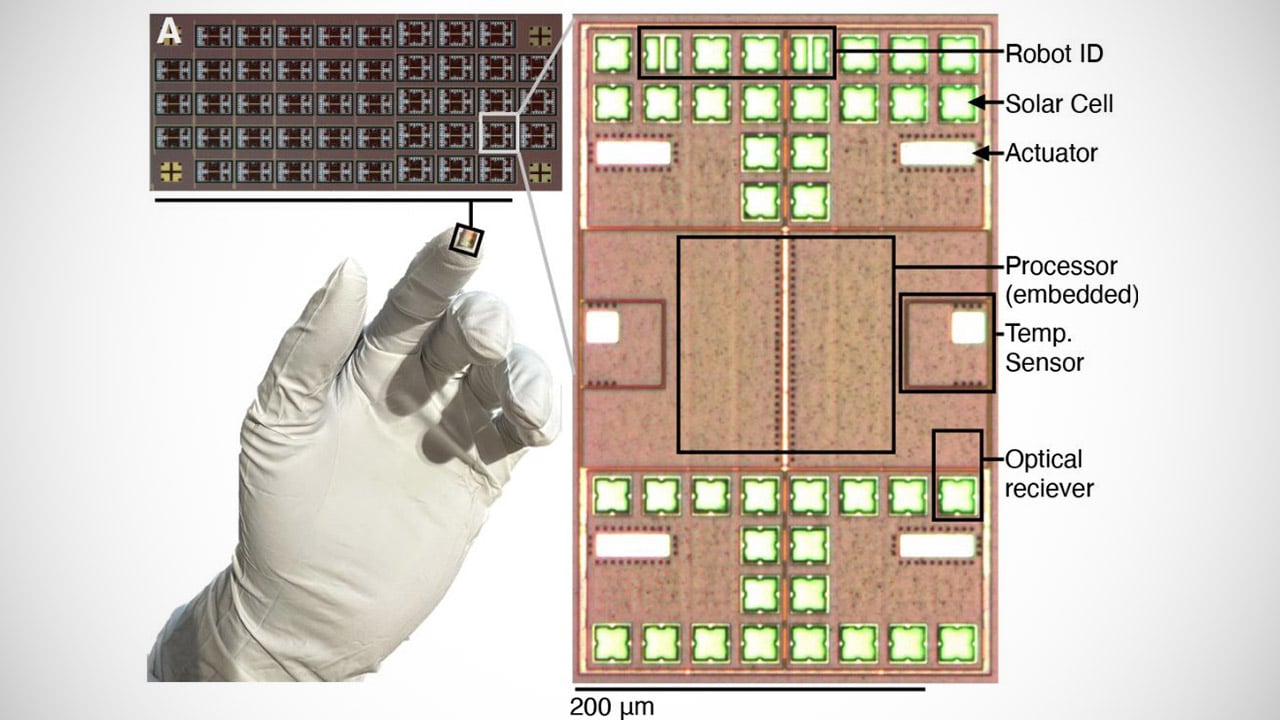 Pesquisadores das universidades da Pensilvânia e de Michigan anunciaram a criação dos menores robôs autônomos programáveis já desenvolvidos. Cada unidade mede cerca de 200 por 300 micrômetros e tem apenas 50 micrômetros de espessura, dimensões comparáveis às de algumas células do corpo humano. São tão pequenos que conseguem se equilibrar facilmente na borda de uma unha ou na ponta de um dedo.
