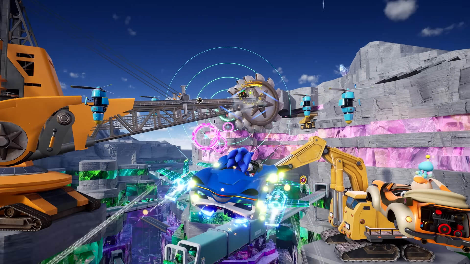 Em Sonic Racing: CrossWorlds, o loop de jogo é simples e profundo ao mesmo tempo. Drifts longos recompensam com boosts, truques no ar encadeiam acelerações, anéis modulam a velocidade máxima e o posicionamento para coletar cápsulas e dispositivos vira uma disputa a parte entre as curvas. O pulso das provas muda ao atravessar os anéis, fazendo com que o ritmo, obstáculos e leituras mudem, mas sem perder a fluidez das três voltas. O jogo também escala a intensidade, com a volta final abrindo novas rotas, ampliando risco e recompensa, e acelerando a trilha, criando um clímax reconhecível dos jogos competitivos.