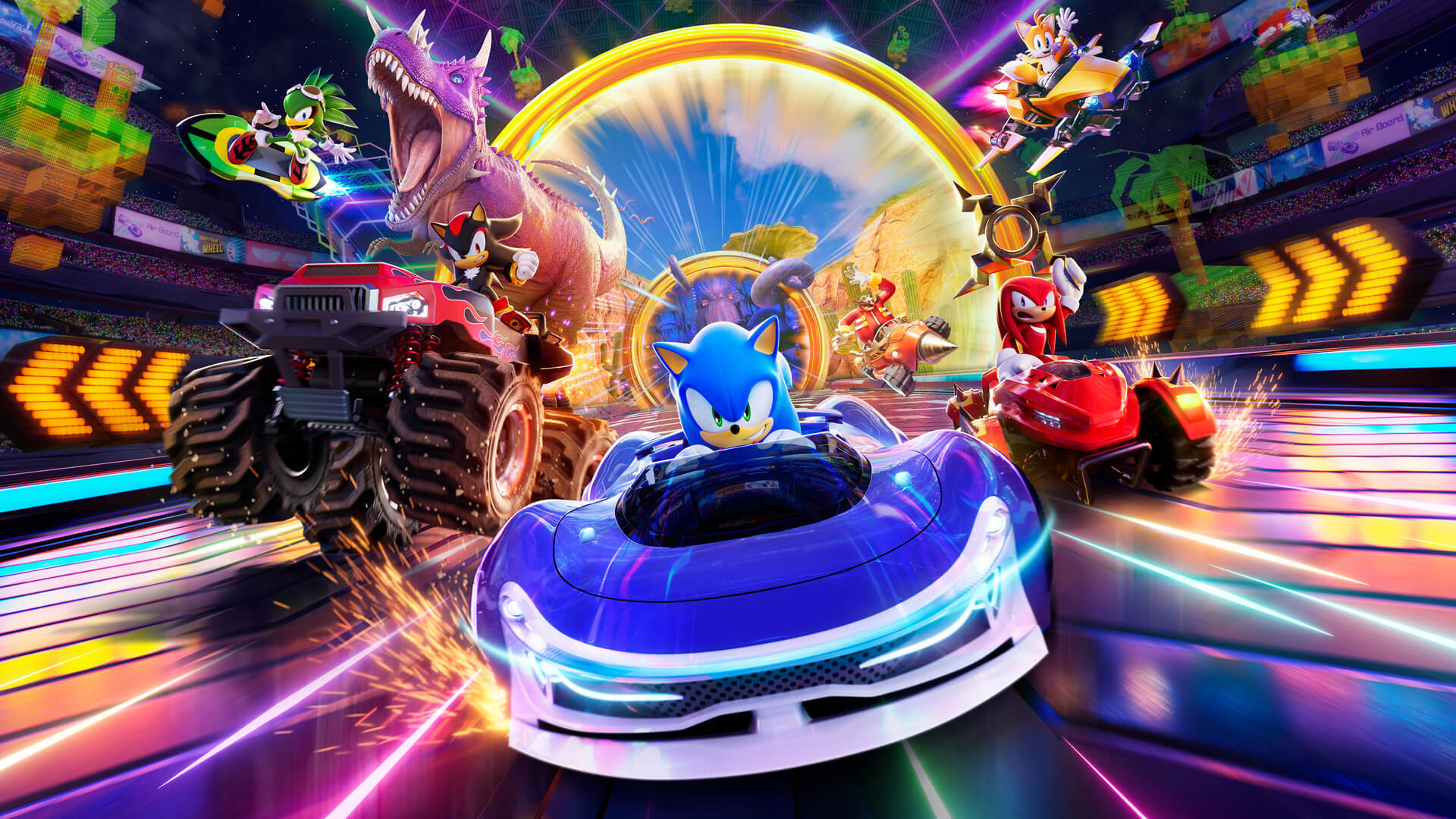 Sonic Racing: CrossWorlds é uma síntese agressiva de tudo o que a série experimentou no asfalto. Desenvolvido pela Sonic Team, a nova proposta busca oferecer um jogo de corrida no estilo arcade e de alta velocidade, com pistas que se reconfiguram e uma progressão que incentiva experimentar veículos, dispositivos e itens a cada campeonato. O diferencial vem dos Rings de Travessia, portais gigantes que, na segunda volta, transportam o grid para uma dimensão alternativa, daí os CrossWorlds do título, antes de retornar ao trajeto original para a volta final.